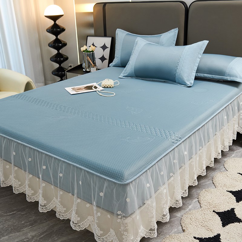 夏季床裙床笠款冰豆豆凉席三件套凉豆豆席蕾丝花边凉感席空调席子