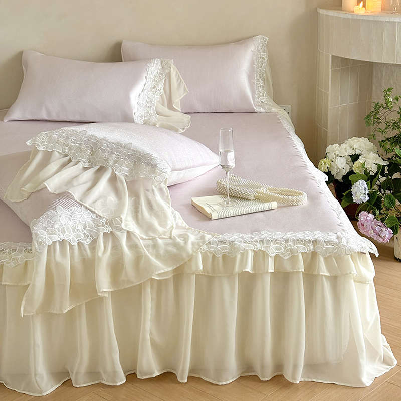 公主风床裙款冰丝凉席三件套夏季可折叠可水N洗蕾丝边软席子空调