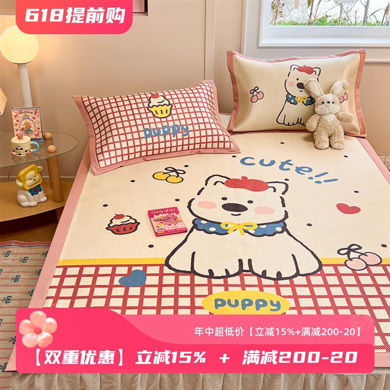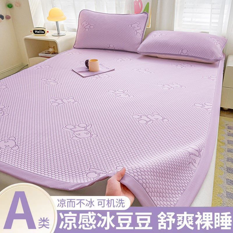 可爱卡通夏季裸睡凉感冰丝凉席二三件套学生宿舍裸睡空调软席机洗