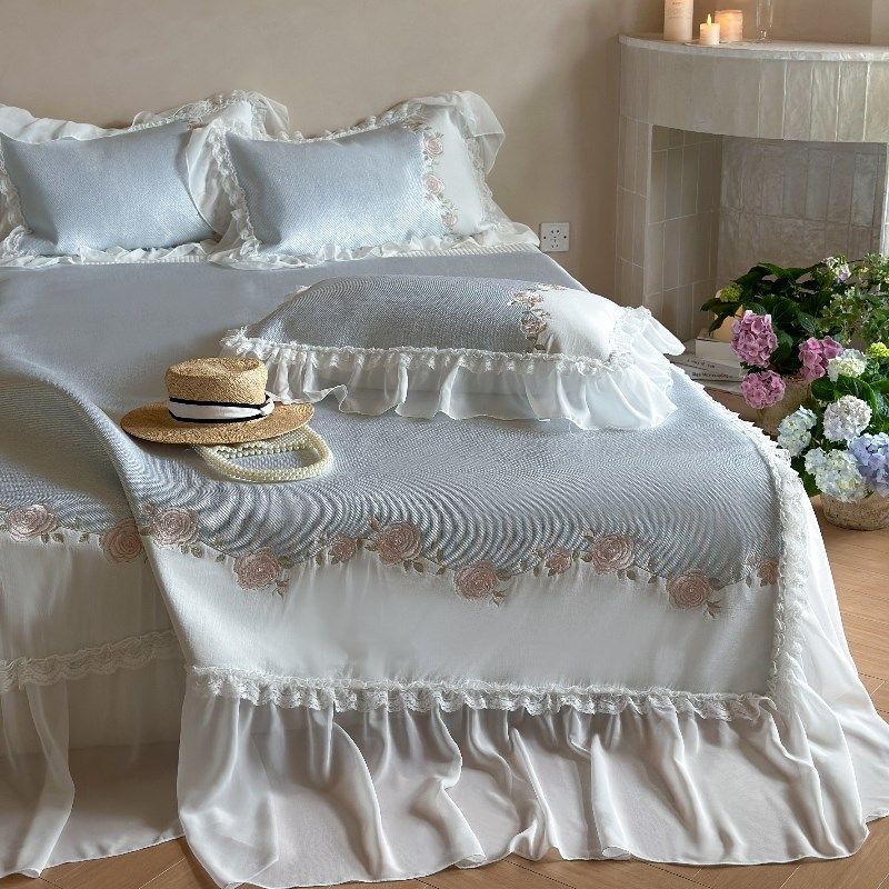 小清新夏季冰丝凉席三件套可水洗少女心刺绣床裙款1.8米空调软席