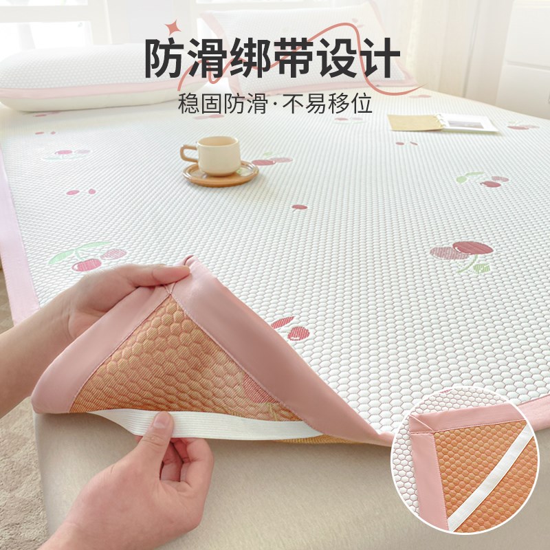 夏季冰丝凉席三件套2025新款藤席子可机洗单双人学生宿舍空调软席