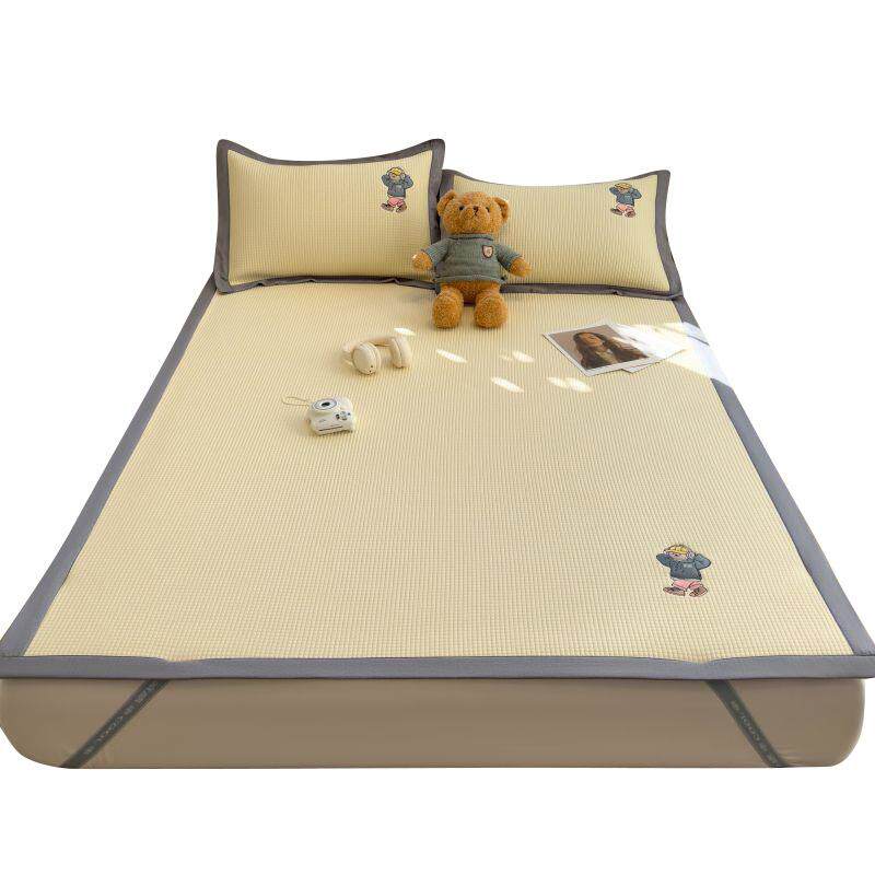 卡通刺绣冰豆豆凉席三件套凉感软席可水洗空调席夏季单人席子