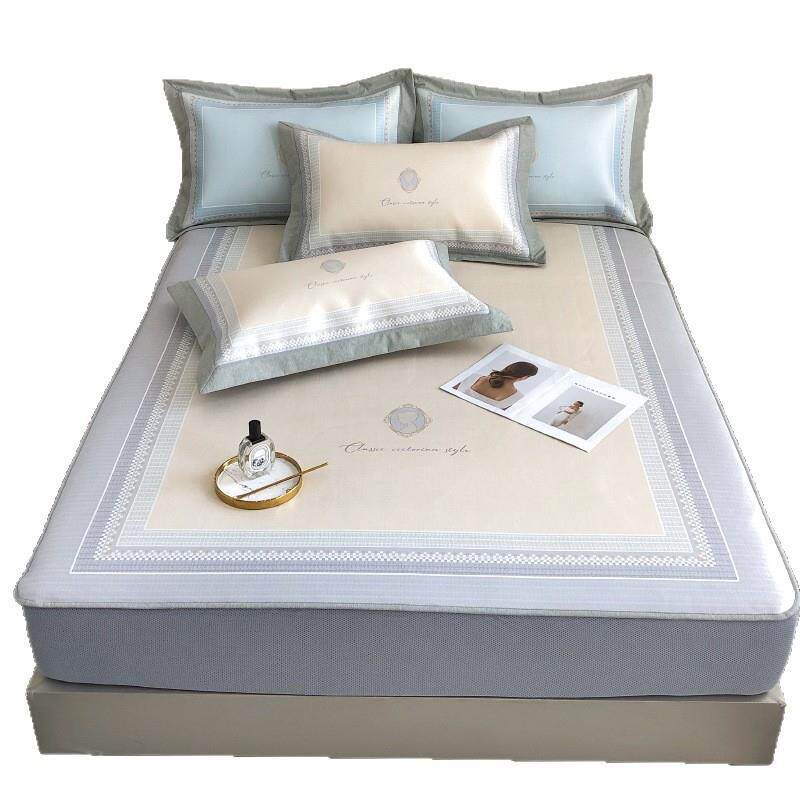 轻奢极简高定床笠式数码印花咖啡炭冰丝席子机洗空调席三件套
