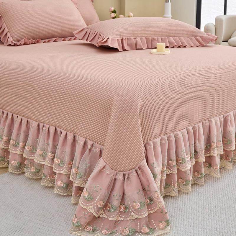 欧式凉感冰丝席床裙款三件套夏季可拆卸花边凉席夏天空调软席凉垫