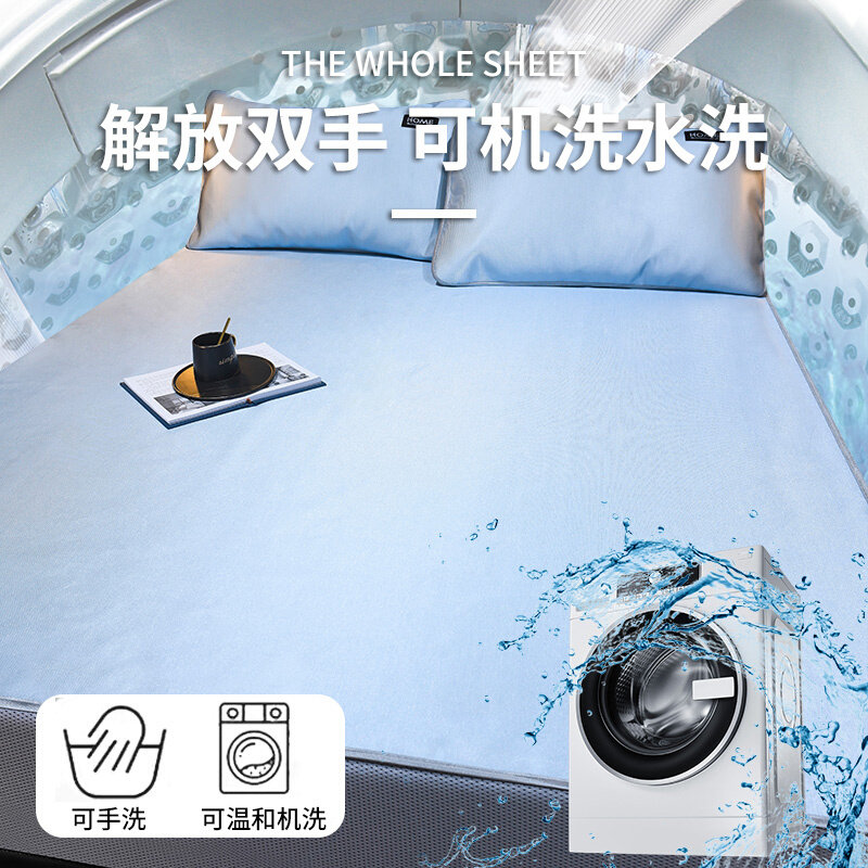 可机洗床笠款冰丝席三件套1.5/1.8/2米床夏季空调席夏凉席可折叠