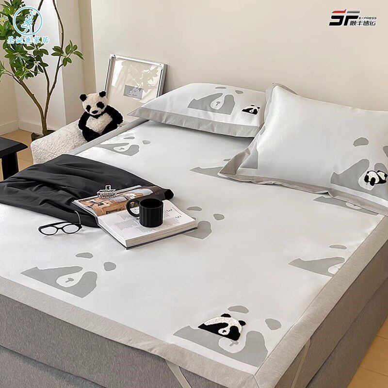 A类卡通儿童抑菌凉感冰丝凉席三件套可爱熊猫可折叠空调软席子1.8