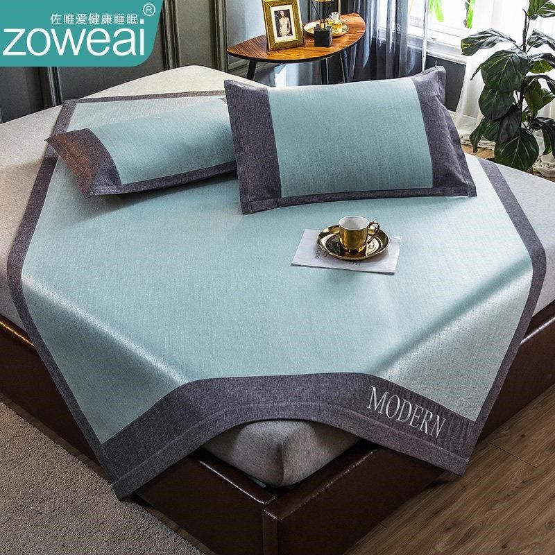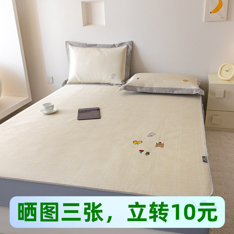 夏季凉感类养生冰丝席三件可机洗毛巾绣凉席空调软席子床笠款
