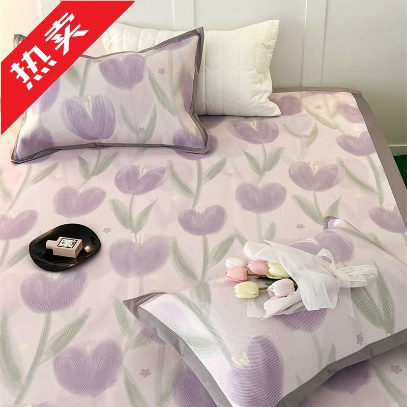 ixA类夏季冰丝凉席郁金香小清新冰藤凉席可机洗折叠空调软席