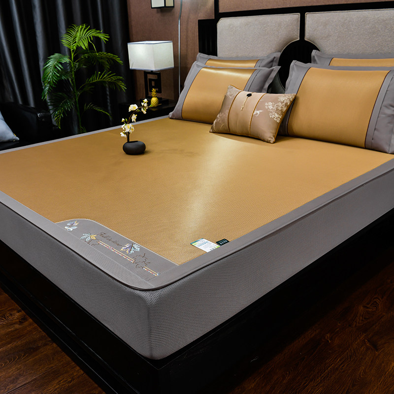 高端养生冰丝席三件套夏季凉席可机洗可折叠软席空调席子防滑