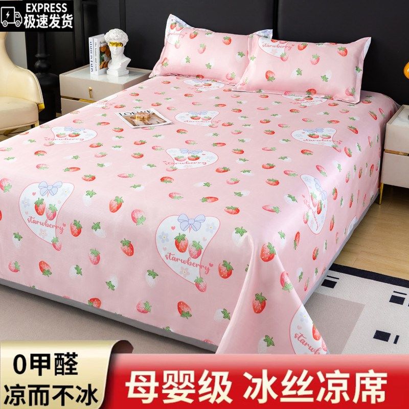 可爱卡通夏季裸睡凉感冰丝凉席二三件套学生宿舍裸睡空调软席机洗