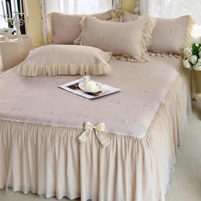 夏季裸睡冰丝凉席蕾丝边床裙款三件套公主风纯色空调席凉感软席子
