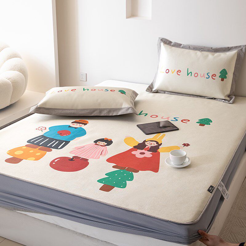 A类卡通冰豆豆凉席夏季冰丝席夏天双人家用空调软席可机洗三件套