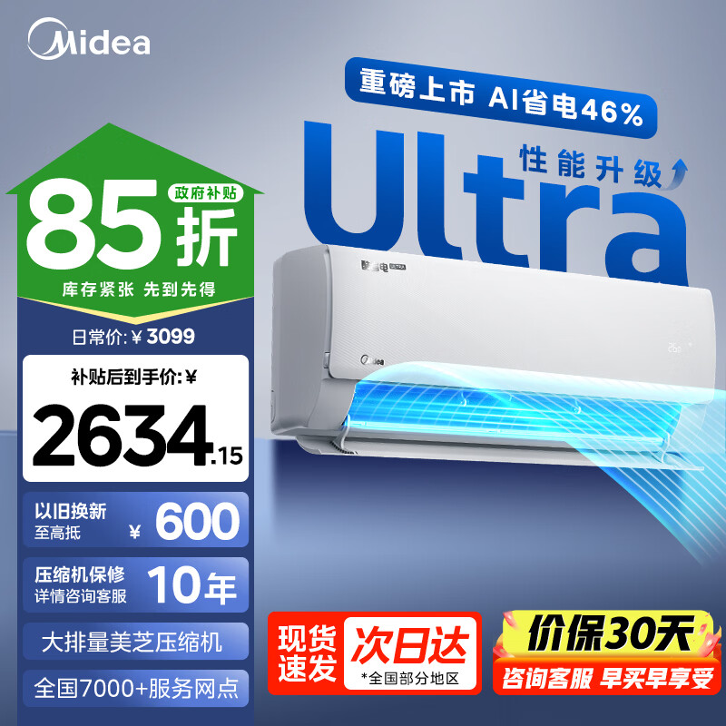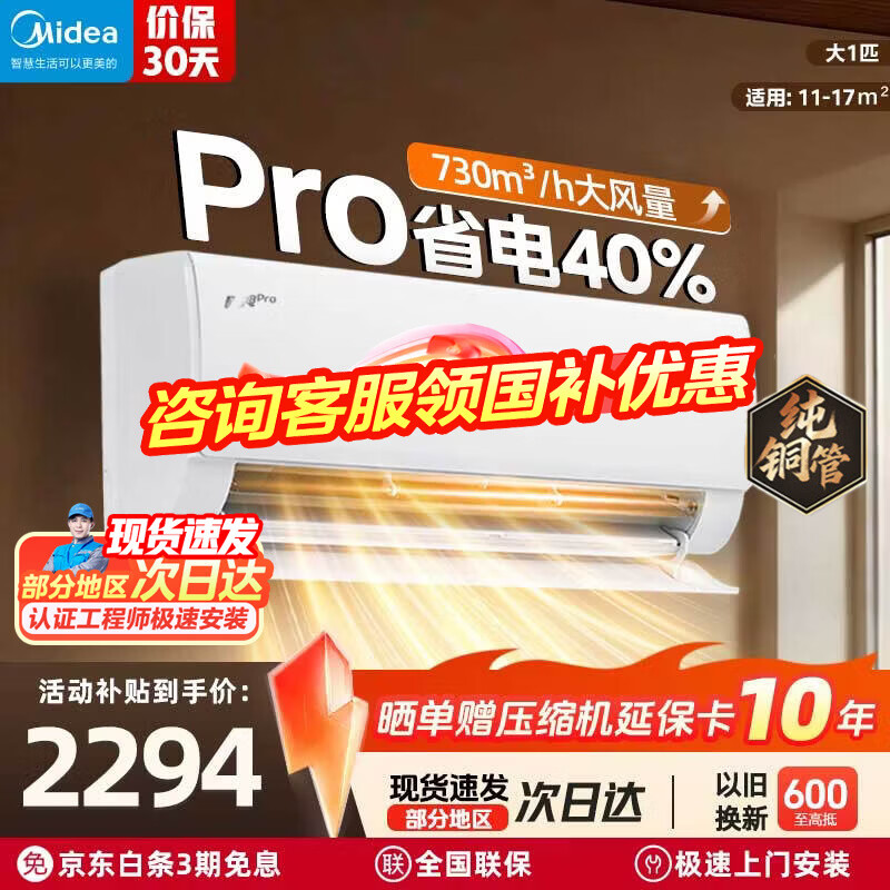 美的(Midea)国家补贴15% 酷省电二代PRO大1.5匹 空调挂机 新一级能效 ultra 变频节能省电冷暖家用卧室壁挂式 酷省电Pro 一级能效 大1匹