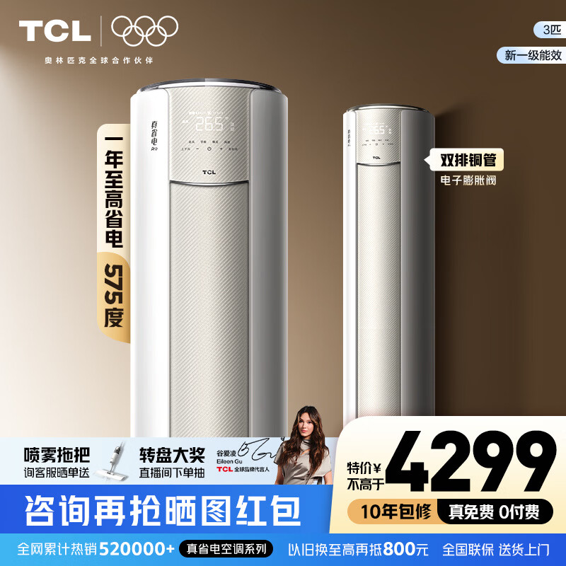 TCL空调 新品京东联名真省电Pro二代 大3匹新一级能效变频双排铜管立式客厅柜机以旧换新补贴 真省电Pro二代 3匹 超一级能效 京东安装