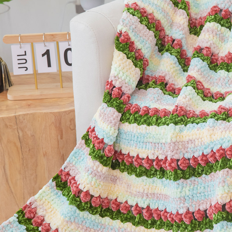 雪球暖绒手工盖毯diy编织郁金香毯子材料包冬季保暖空调沙发毯