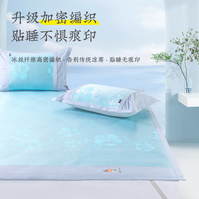 新款直销冰丝席三件套空调席学生宿舍单人床0.9米双人凉席便携折