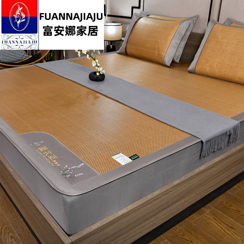 夏季20b24新款加厚冰丝凉席床笠款藤席空调席子学生三件套凉席草
