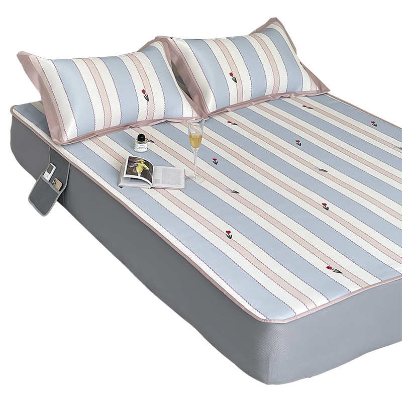 JW冰丝凉席三件套可折叠水洗冰感藤席床笠款软席夏季空调席
