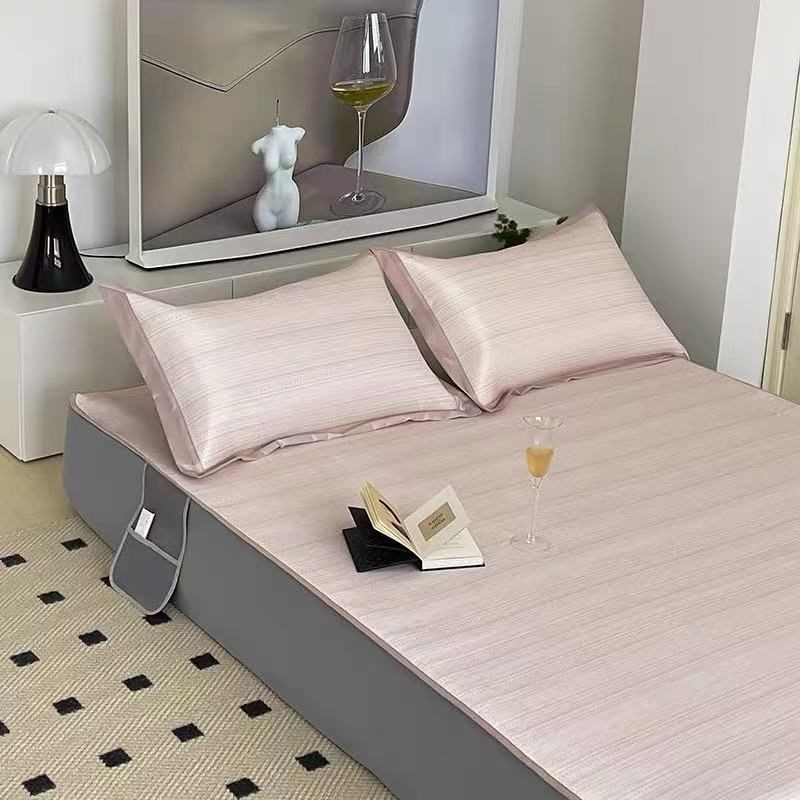 夏天冰丝凉席三件套2025新w款冰藤席绑带款凉感床单垫空调席软席