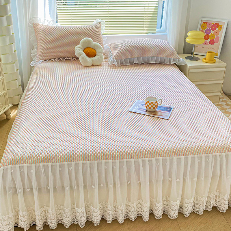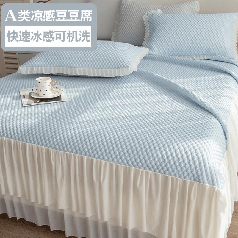 公主风床裙夏季冰丝凉席2t025新款凉感豆豆席三件套空调席软床席