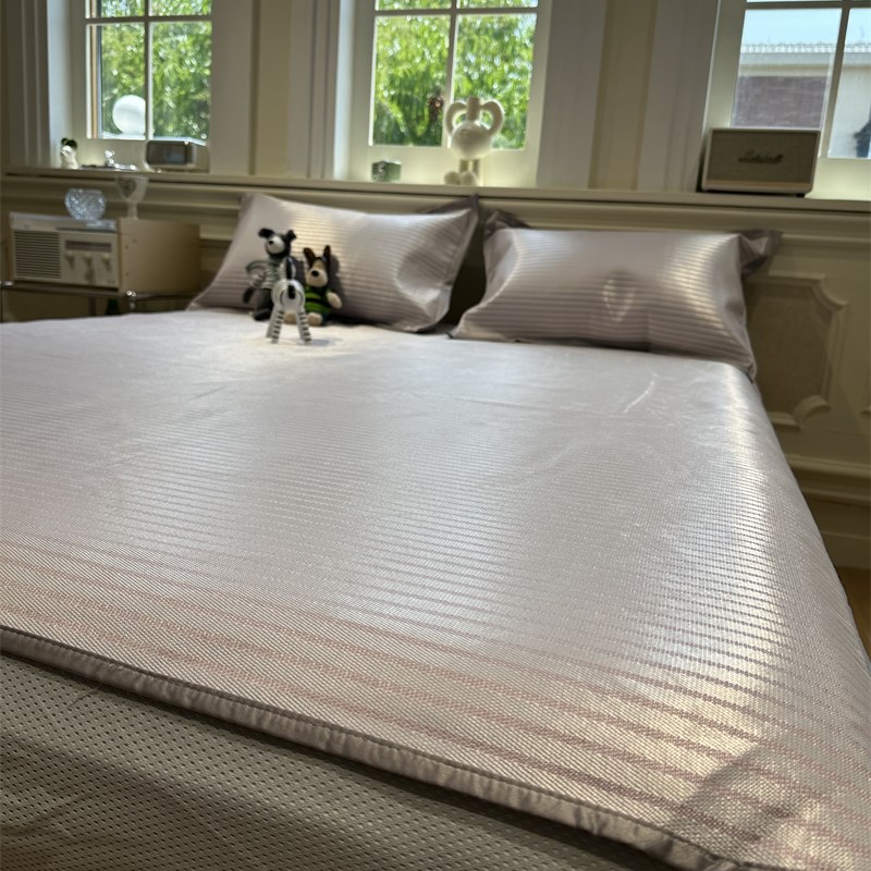 轻奢A类乙纶凉席三件套聚乙烯冰丝席可机洗水洗空调软席2m床笠1.8