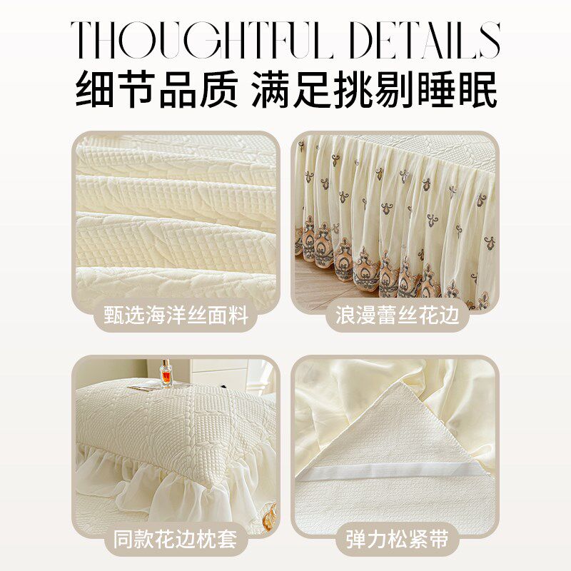 法式夏季凉感豆豆冰丝凉席三件套公主风蕾丝边床裙可机洗空调软席