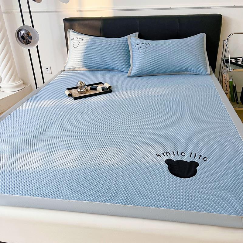 夏季A类冰豆豆冰丝凉席三件套刺绣高端床单人空调软席垫子可机洗