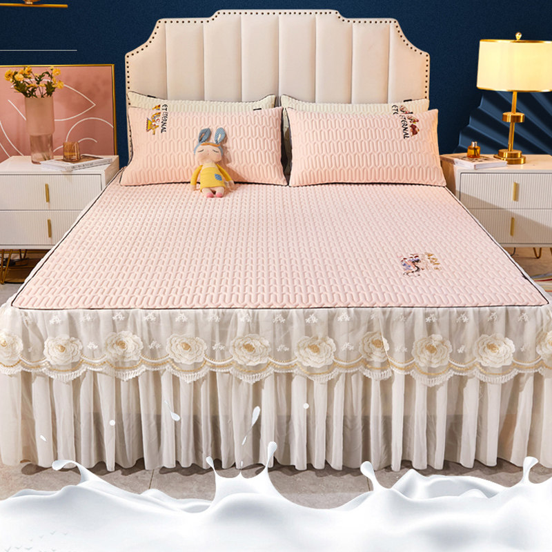 乳胶凉席三件套床裙款夏天冰丝夏凉垫可水洗床单四件套空调席床盖