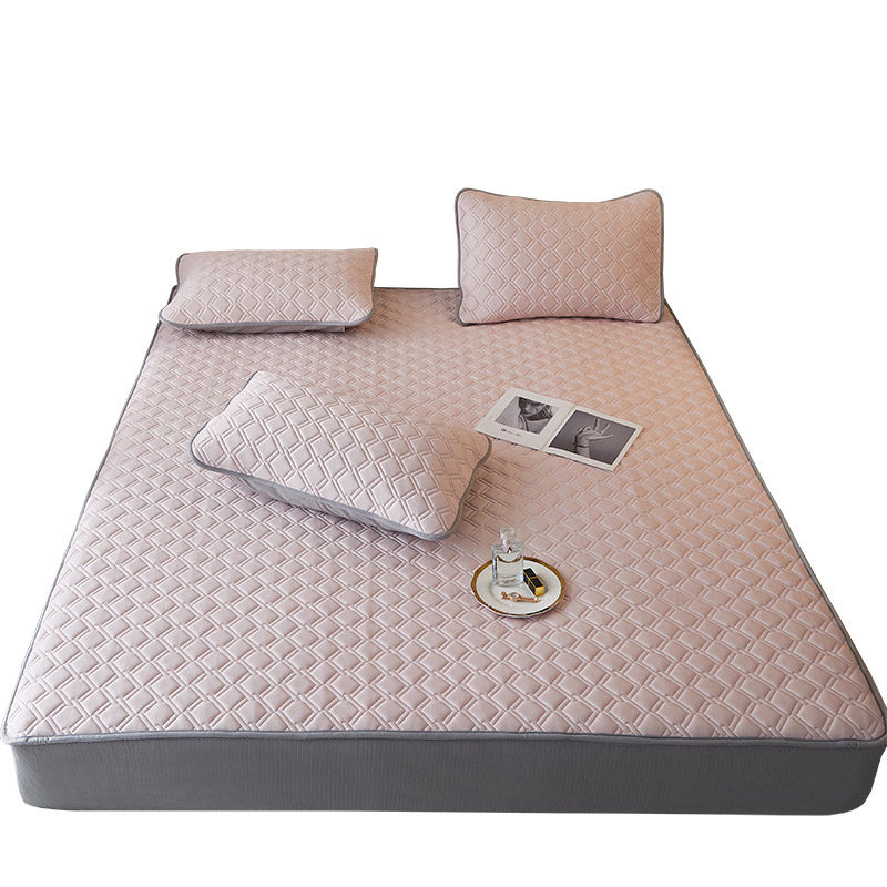 床裙乳胶凉席三件套夏季纯色床垫冰丝席空调软席子1.8m床罩可机洗