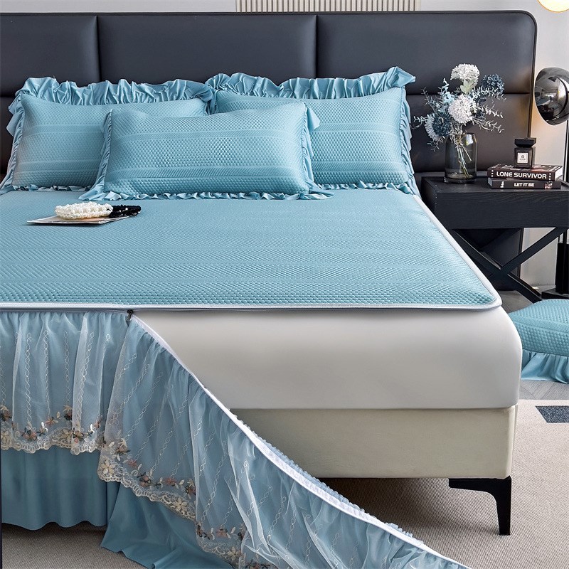海洋丝凉感冰丝席三o件套公主风可拆卸床裙款夏季可机洗空调软席