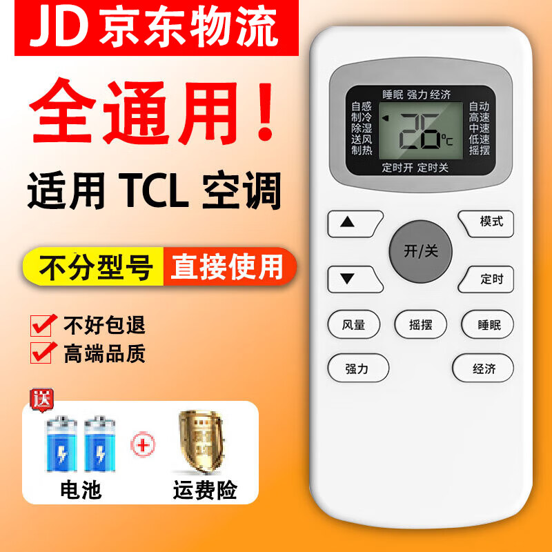 适用tcl空调遥控器通用万能款全部壁挂机立式柜机直接使用 TCL空调遥控器+电池