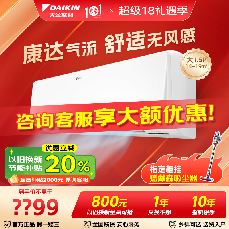 大金空调上海专享(DAIKIN) E-MAX 8 冷暖变频康达气流自清洁挂机以旧换新大1.5匹三级能效 FTXR336YC-W 三级能效白色FTXR336YC-W 大1.5匹