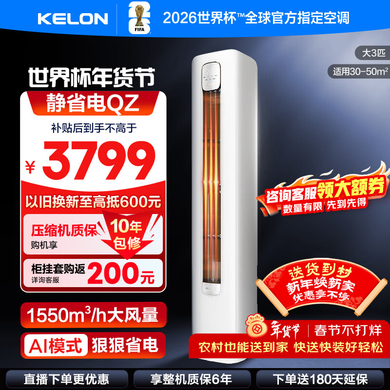 科龙(KELON)空调 海信出品 大3匹柜机 静省电 轻音好眠 AI高效省电 新一级变频冷暖立式客厅家用以旧换新 大3匹 一级能效 【全新升级】72QZ1X1A 享压缩机10年包修