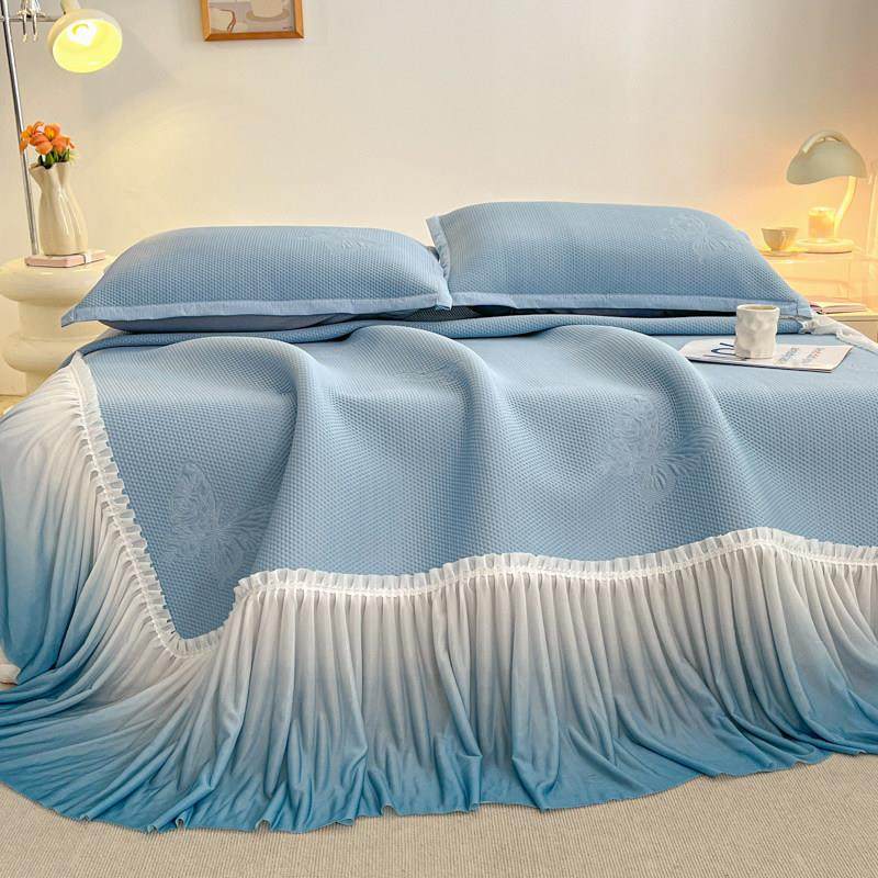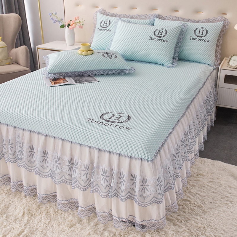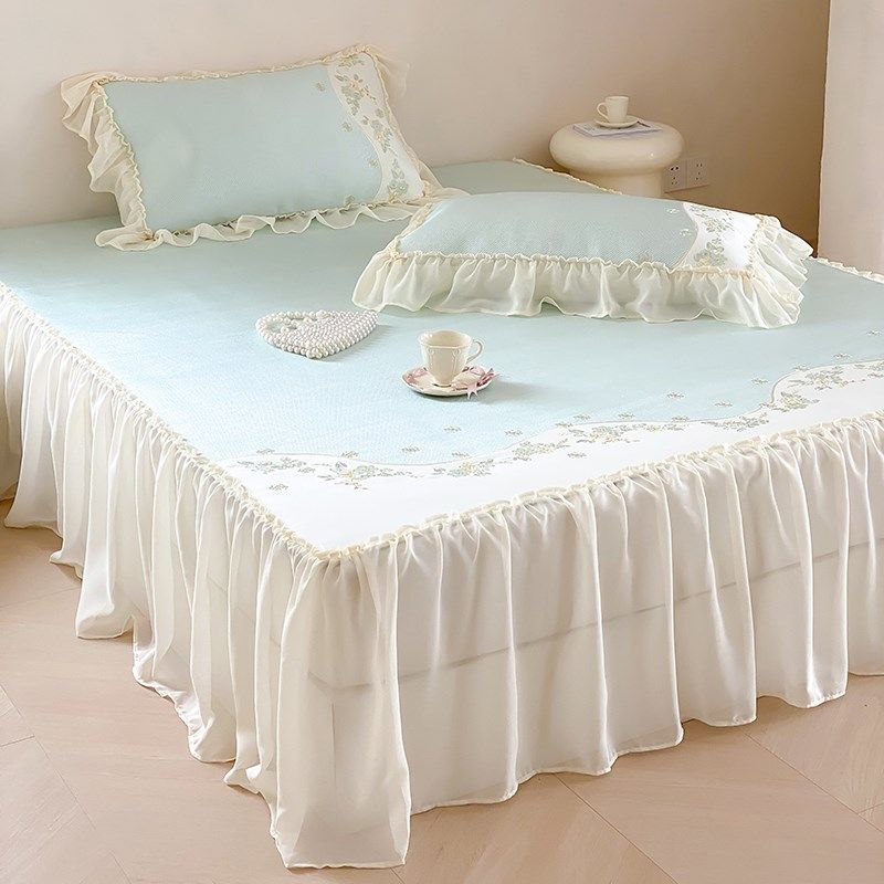 新款双层花边床裙夏季冰豆豆凉席三件套可水洗空调软席