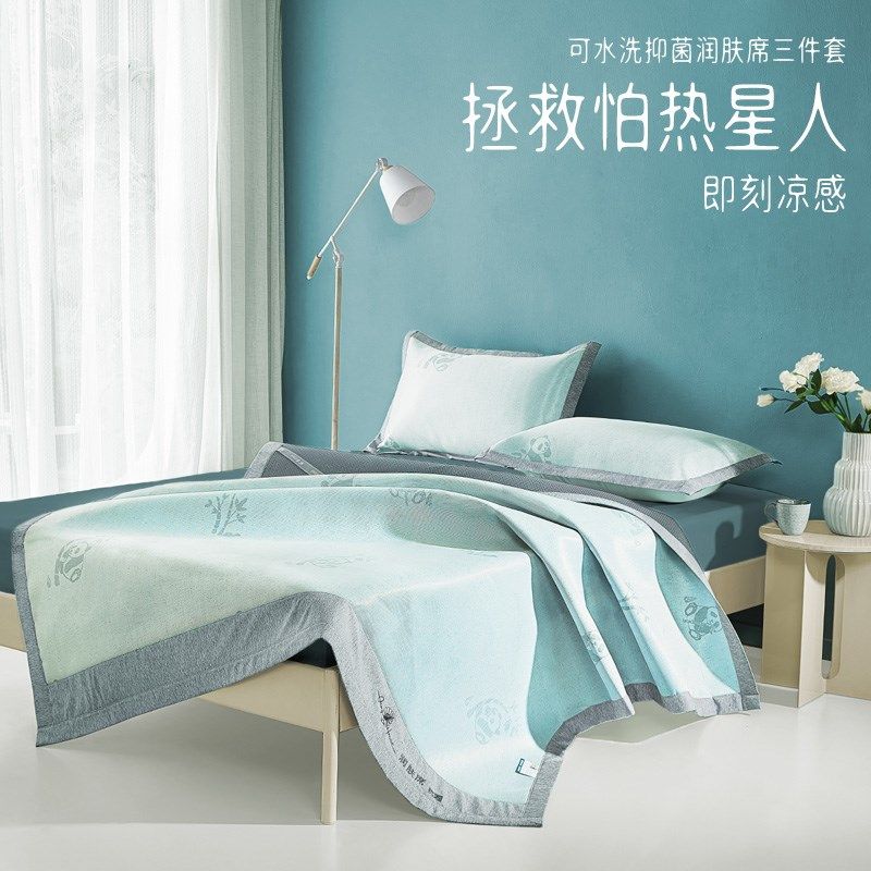 冰丝凉席冰感席三件套夏季凉感冰藤席空调席子可折叠可机洗印花
