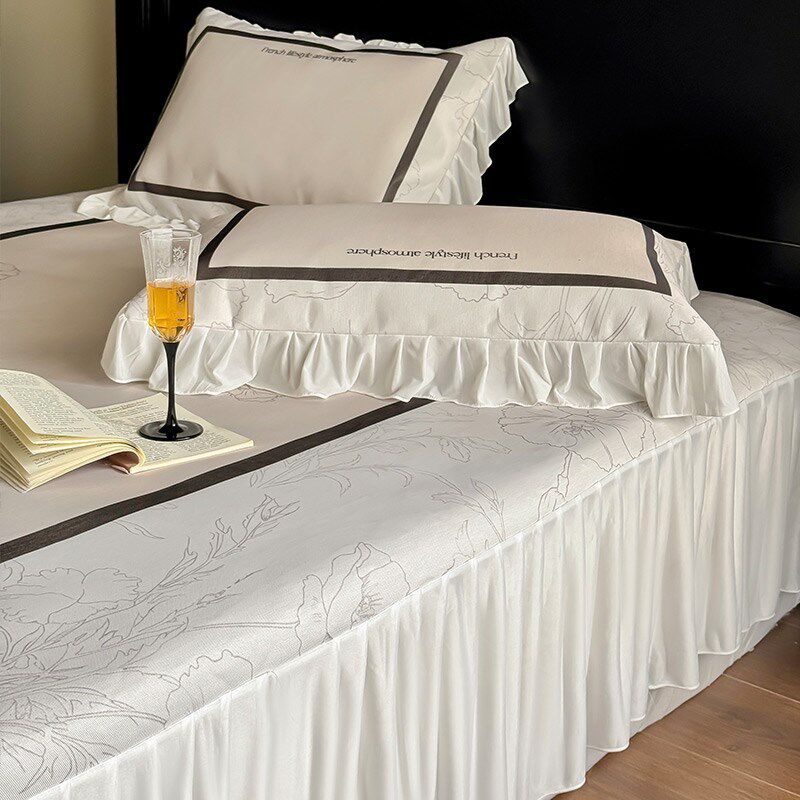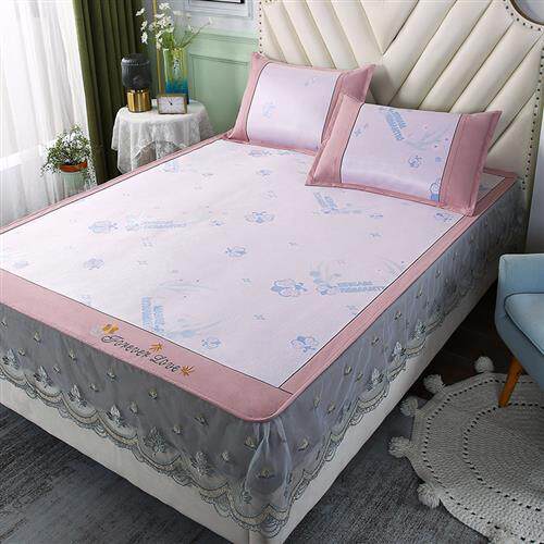 速发夏季法式凉席折叠三水套公主风印花床裙洗件可凉感空调软席子