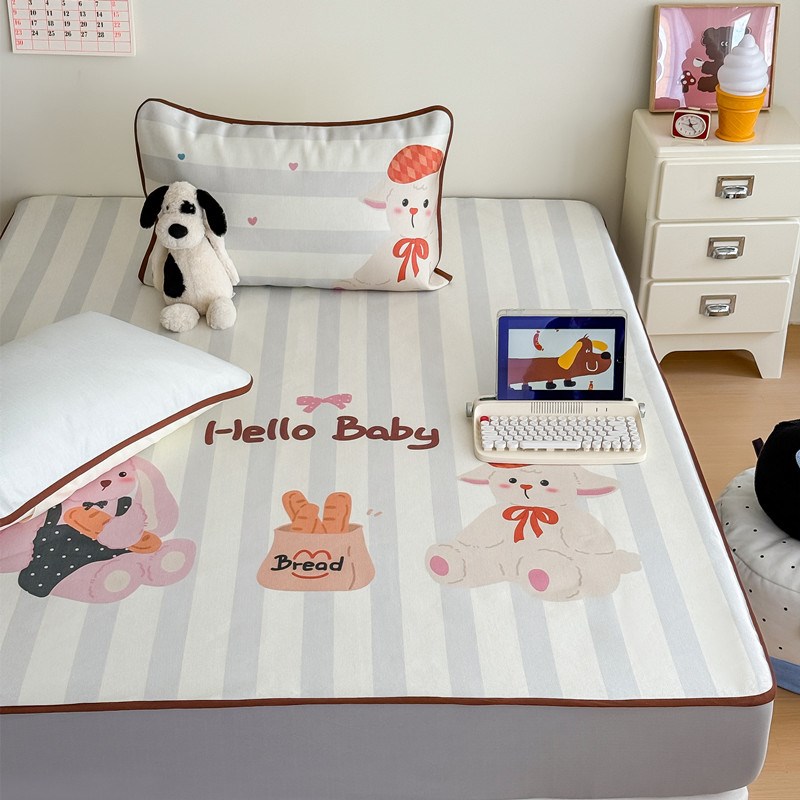夏季卡通冰丝凉席三件套ins可爱可水洗软席床笠款夏凉空调席1.8床