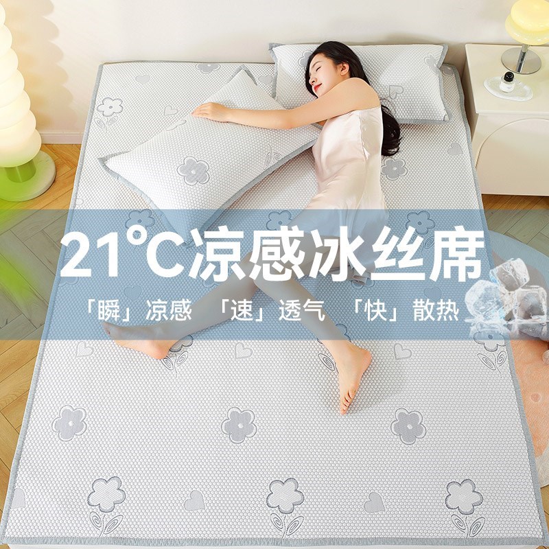 2025新款可机洗冰丝席凉感x空调席软席子宿舍冰豆豆冰丝凉席三件