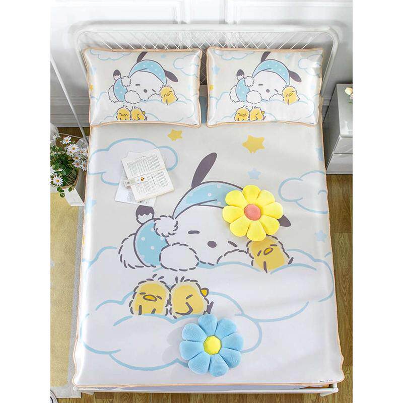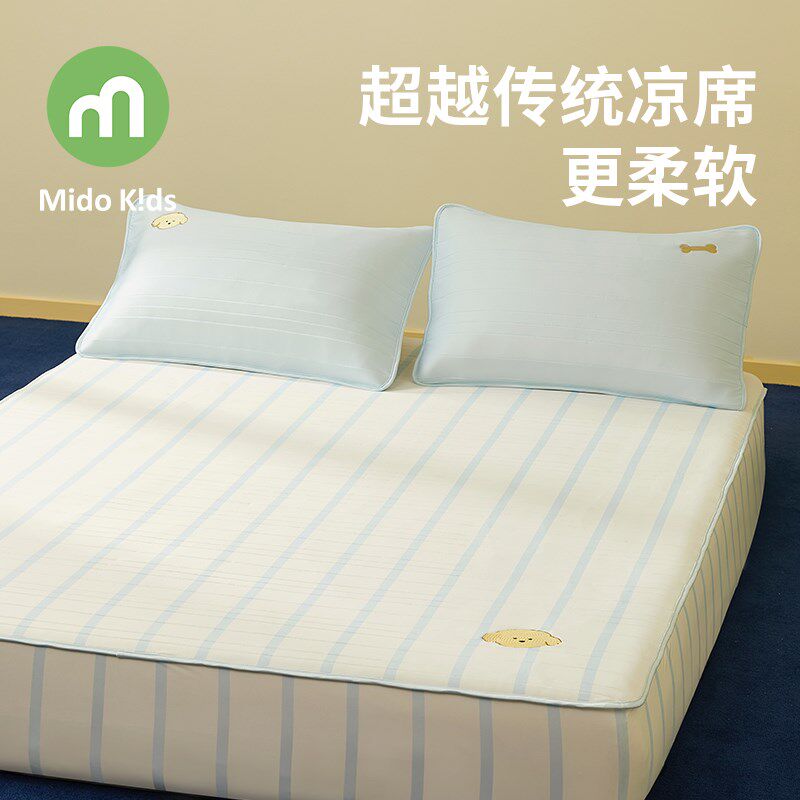 儿童冰丝凉席三件套床笠款空调软冰席夏季凉感席子-布丁小狗