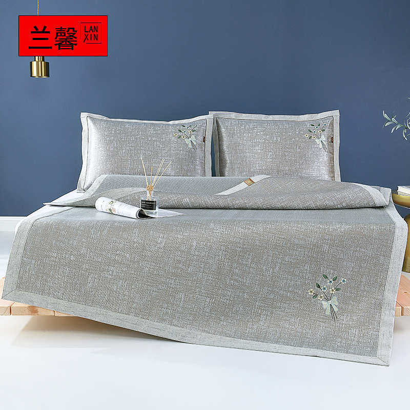 兰馨夏季冰丝凉席三件套可机洗可折叠空调席双人1.8家用纯色冰席
