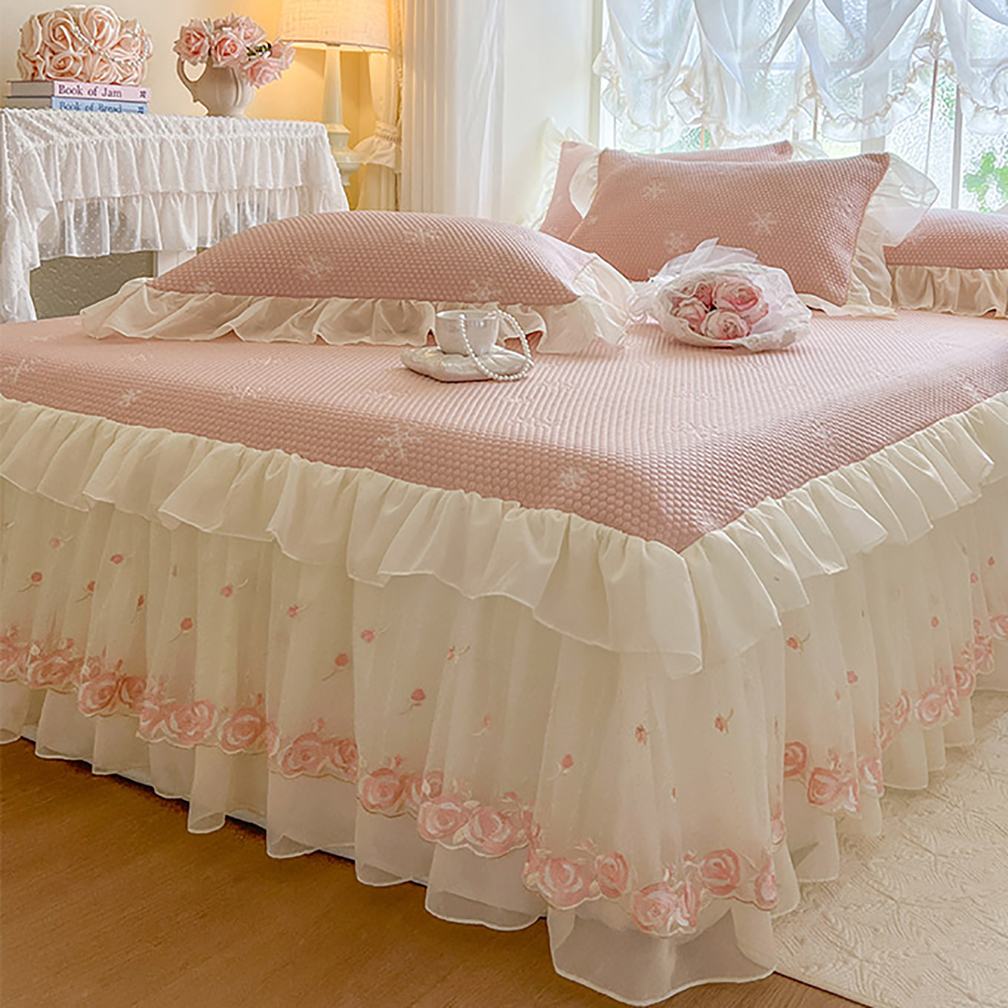 夏季PE凉感冰豆豆凉席三件套床裙冰丝席可机洗蕾丝花边空调软席子