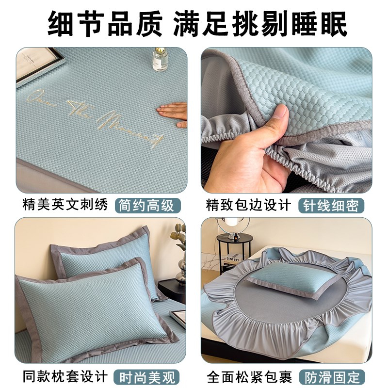 A类夏天冰丝凉席床笠款冰豆豆三C件套可水洗夏凉垫空调床单款软席