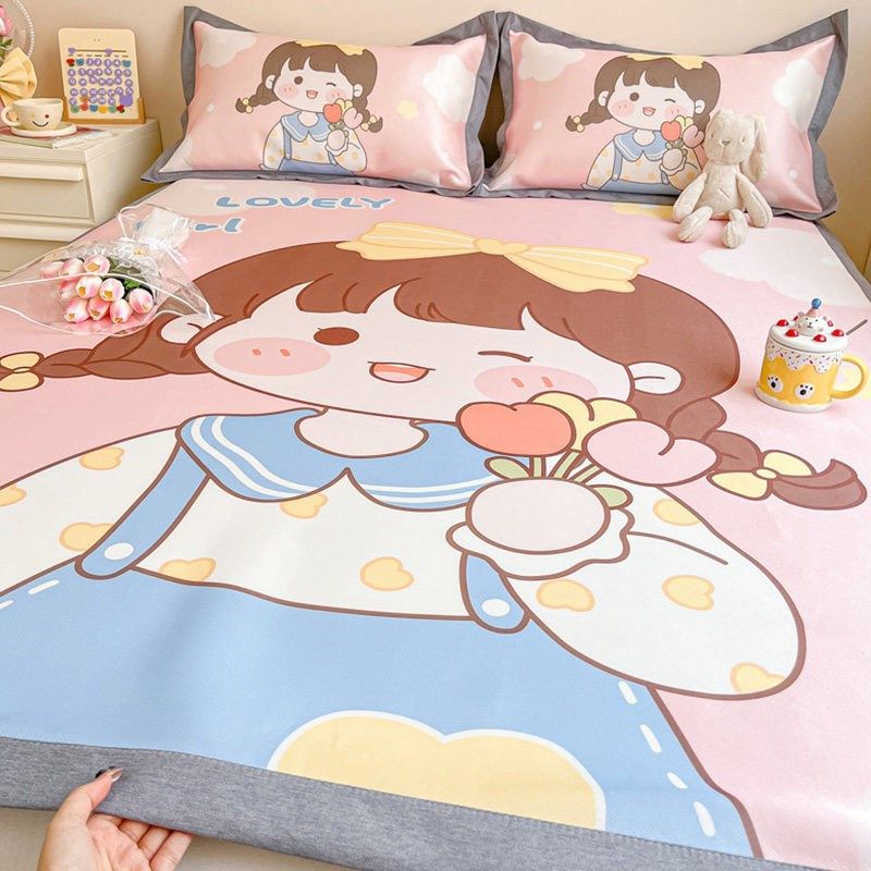 冰丝凉席床笠款卡通夏季儿童空调席子防滑床罩榻榻米薄床垫套