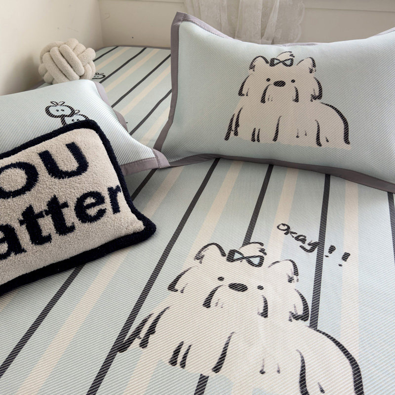 夏季可爱卡通风冰丝凉席三件套床席床笠款儿童可水洗可折叠空调席