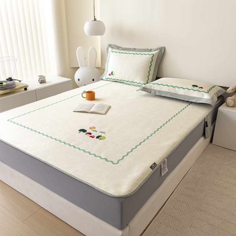 夏季凉感可水洗冰藤席三件套字母刺绣折叠式床席床笠款空调软席子