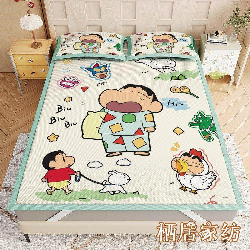 蜡笔小新冰丝席凉席三件套夏季儿童卡通可爱凉席可机洗空调软席子