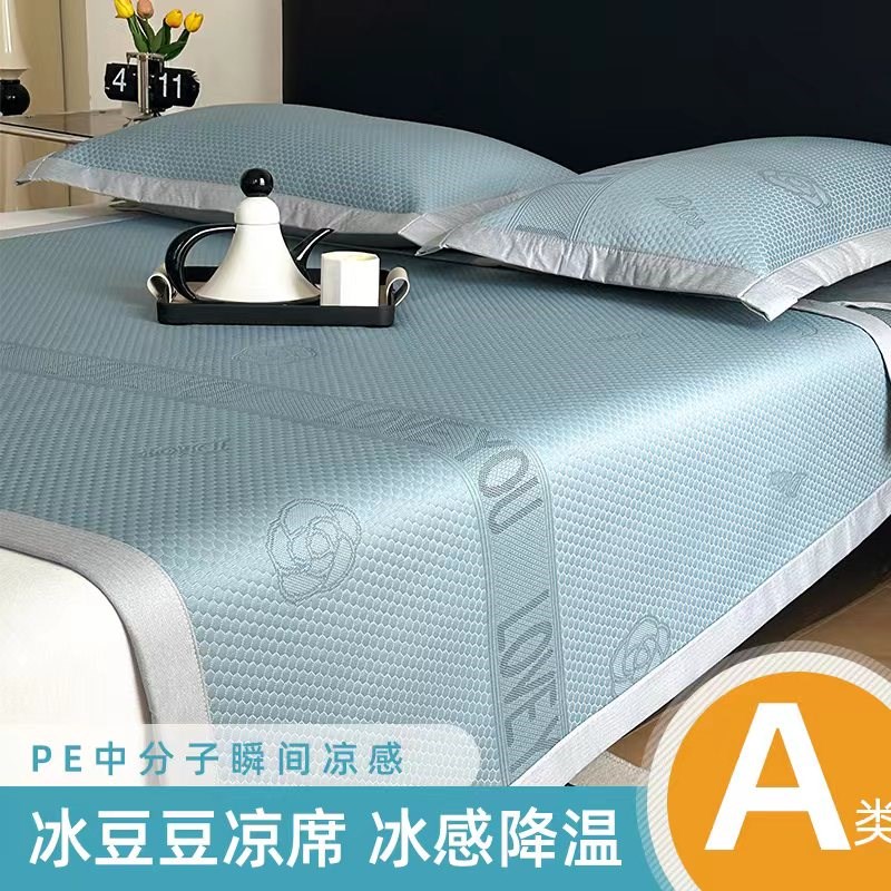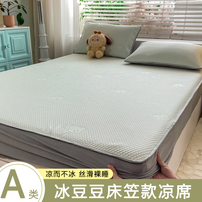 A类冰豆豆凉席床笠款夏季冰丝席可折叠软席子家用空调席可水洗