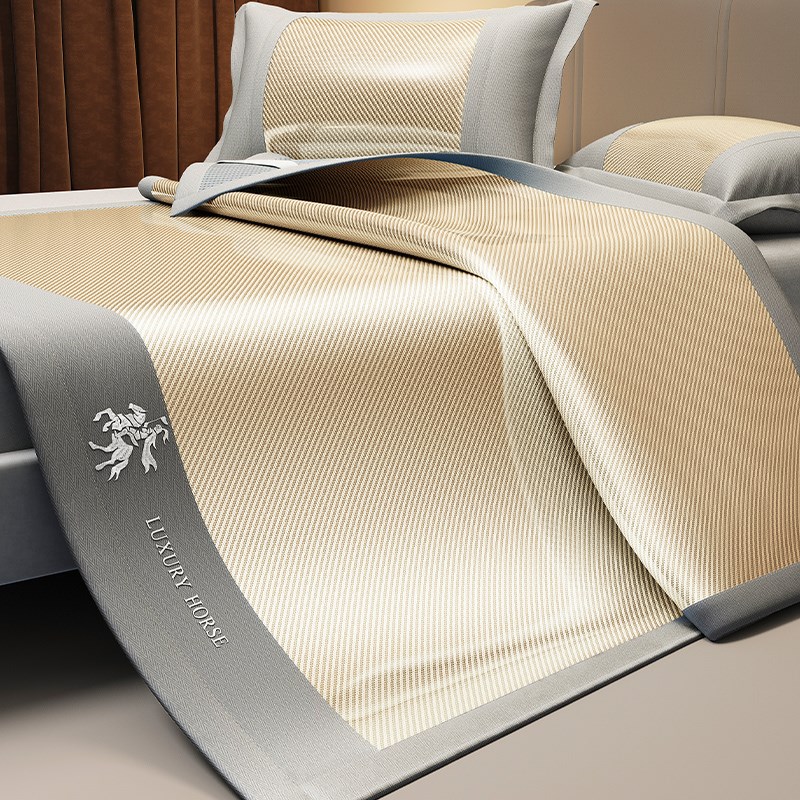 高级感轻奢冰e丝席三件套夏天可水洗空调席冰藤席床笠款凉感席学