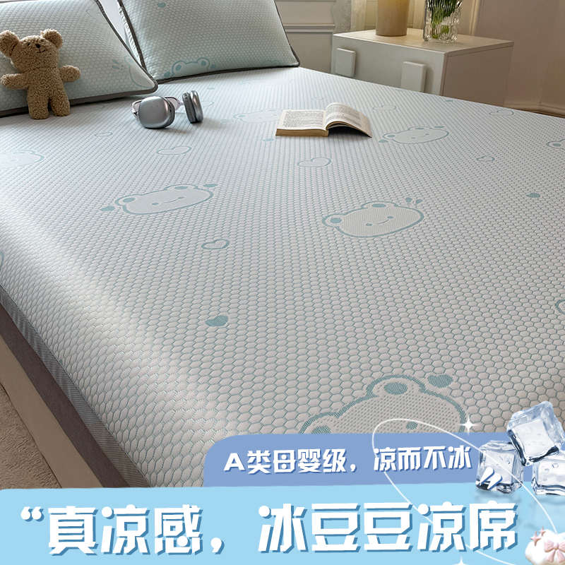 丝冰席儿童凉三件套2024可感空调豆豆水洗冰夏季软席机新款凉席子