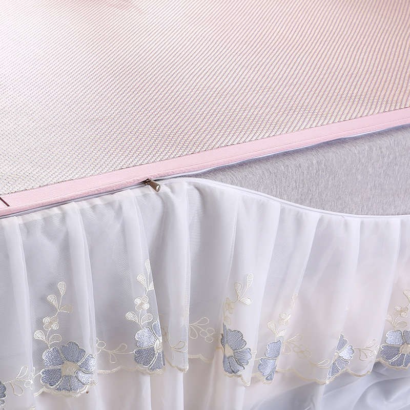夏季冰丝豆豆凉席三件套床裙款可机洗折叠床罩公主风蕾丝边空调席